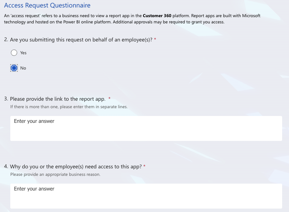 Digital Prototype: Access Request Questionnaire